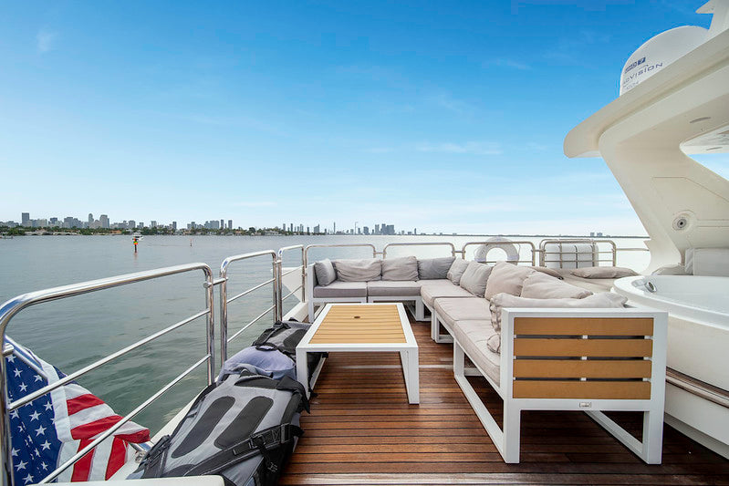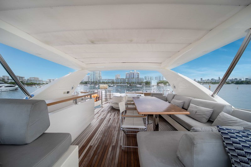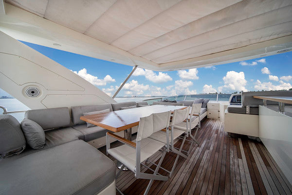 84-foot Azimut. Open deck layout, big aft swim platform.